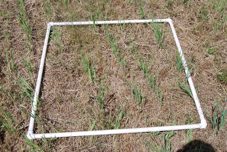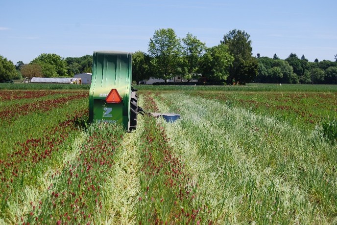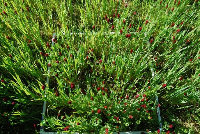 Figure 1. Cover crop termination with electricity on a field planted with a mix of oats and red clover in western Oregon.