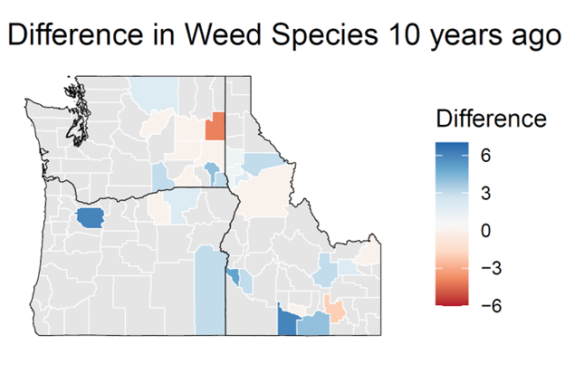 Recent survey results from the Pacific Northwest Herbicide Resistance Initiative (PNWHRI) highlight how much weed pressure and complexity have grown over the past decade from the perspective of producers. In winter 2024–2025, PNWHRI researchers launched an anonymous survey to learn how weed control challenges have shifted for producers in Idaho, Oregon, and Washington. The survey was distributed at grower meetings, through Extension and industry newsletters, and conservation district communications. Eighty-one responses from 29 counties provided a window into farm realities across a diverse range of crops—wheat, pulses, oilseeds, forages, potatoes, sugar beets—and rainfall zones spanning 7 to 40 inches annually. Most respondents farmed without irrigation, and the majority operated at a commercial scale, with nearly 60% managing more than 1,000 acres.